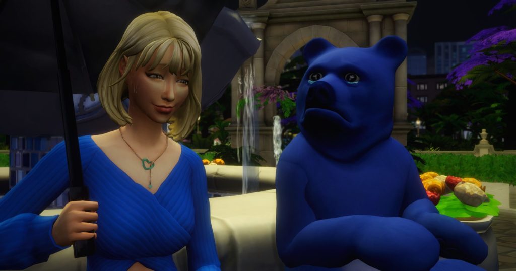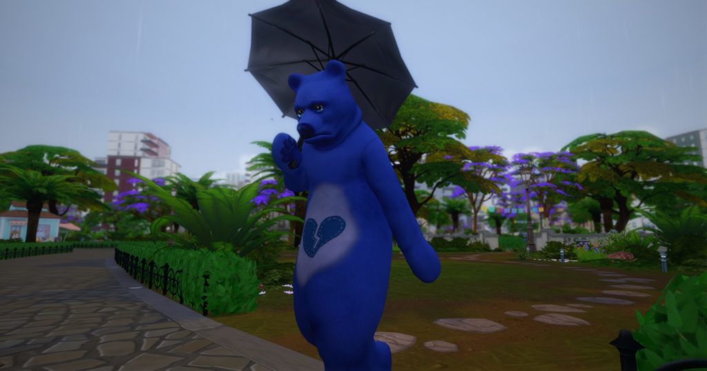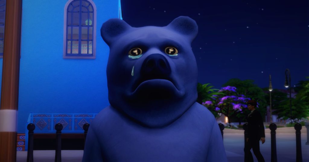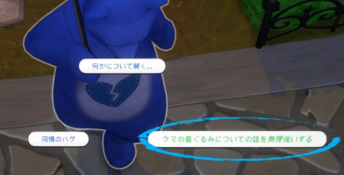 青いクマさんがいる!しかも悲しそうに泣いてる!初めて見た!!
