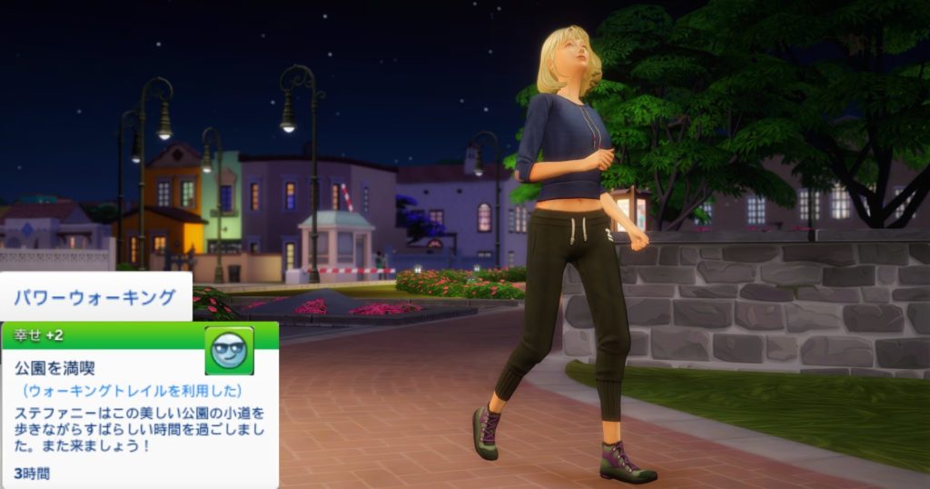 ちなみにこの池の周りはウォーキングトレイルという所謂ウォーキング用の道があって、「パワーウォーキング」というコマンドで特殊なジョギングができます。