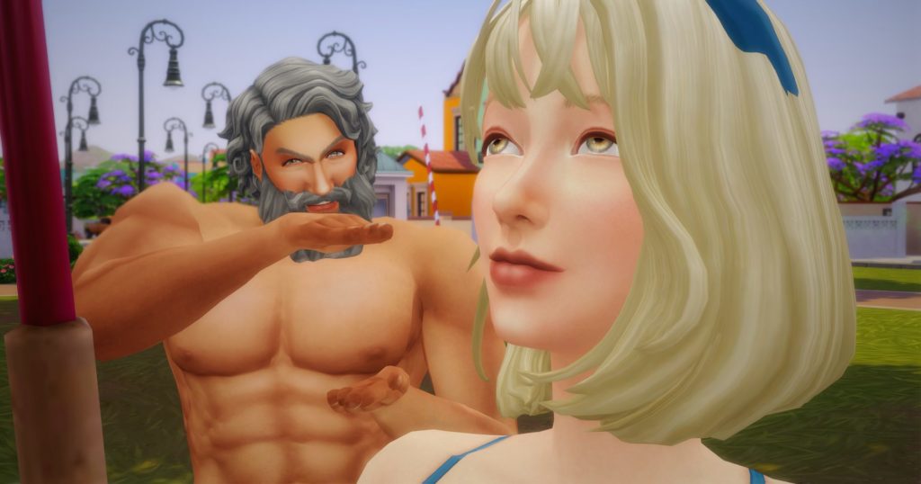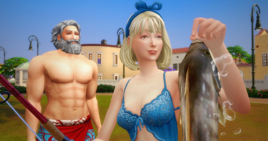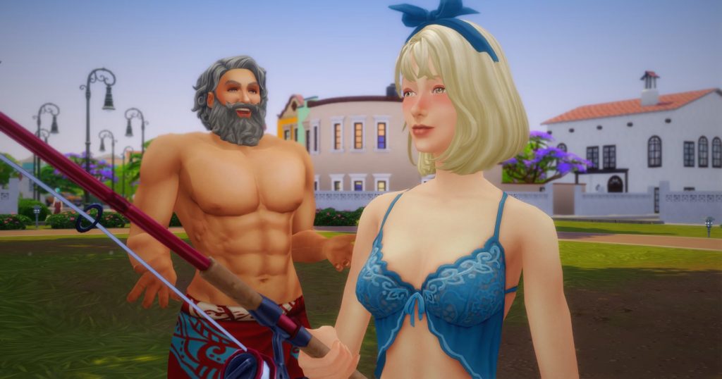 翌日。池のほとりで海の王様ことトリトン王が散歩していたので、下着姿のまま釣りをレクチャーしてもらうステフ。