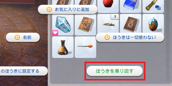 所持品にあらかじめ何でもいいのでほうきを用意しておいてクリックすると「ほうきを乗り回す」コマンドが出てきます