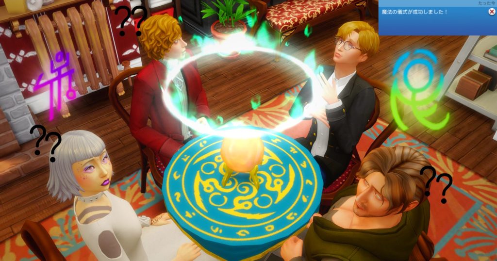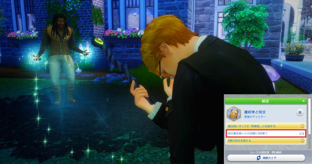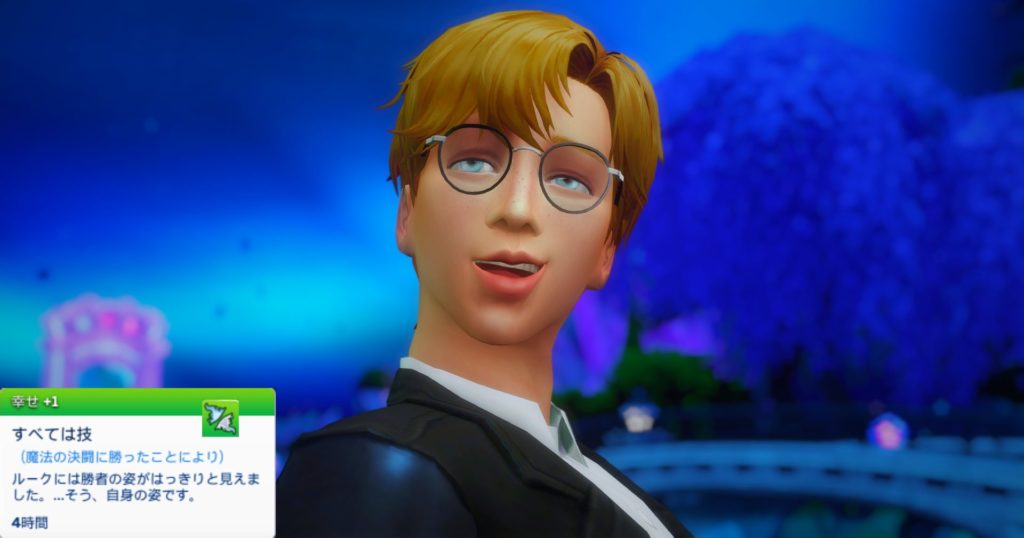 続・ようこそ魔法学校へ #8 プレイ日記 2025.11.29 Episode8 「魔法の儀式をやってみよう!(成長編)」 前回経験不足でことごとく魔法の儀式に失敗したルーク。経験値を上げるべく、学校でひたすらお勉強させています 同時進行で願望達成もしていく。次の段階まで、決闘にあと2回勝利が必要…! とりあえず願望の方はチャチャっと済ませたいので、おんなじくらいの階位の魔法使いさんをターゲットに決闘に勝っていく 見よ、この華麗なまでのドヤ顔(笑) その後も、通りすがりの魔法使いさんに決闘を申し込み、あっさり勝利! 無事に「悪魔のデュエラー」を達成(なんか名前が厨二病みたいね今更だけどw) ルークの調子が上がってきたところで、魔法の儀式に再挑戦。賢者3人を巻き込んで、とりあえず練習が成功するかどうか… お!どうやらうまくいったみたい!!無事に成功して胸をなでおろしているように見えるこの表情w 儀式は間違いなく成功したのに何も起こらなくて3賢者が揃って「??」なリアクションしてる🤣そもそも「儀式の練習」って結局何を練習してるんだって話よwちなみに真相は誰にもわかりません(笑) 練習後、賢者のお二人さんと雑談(モーギン先生はどっか行った(笑))基本的にみんなフレンドリーで、付きっきりでレッスンもしてくれるし、この学校の方々は良いシムたちばっかりでいいですね✨ そして師匠のシメオン先生と修行。毎回なぜか背中合わせ(?)でするのが謎なんですが、たまにこういう背中合わせで戦っているようなスクショ撮れるので結果オーライです(笑) あと少しで魔法のランクが上がりそうだったので、執事のセバスチャンが寝たタイミングを見計らって深夜に家で自主練 はーいということで無事に「達人」ランクに到達しました👏願望達成まであと少し!! To Be Continued… ↓おまけ↓ とどめ技で決めるルーク。笑顔が爽やか うちのシメオン先生は顔の角度45度が一番カッコよく見える(個人的な意見です) 執事のセバスチャンはどうやらかなり奥手らしい。超誘惑的なムードレッドなのに恋愛コマンド全部拒否られる、どうして…(笑)